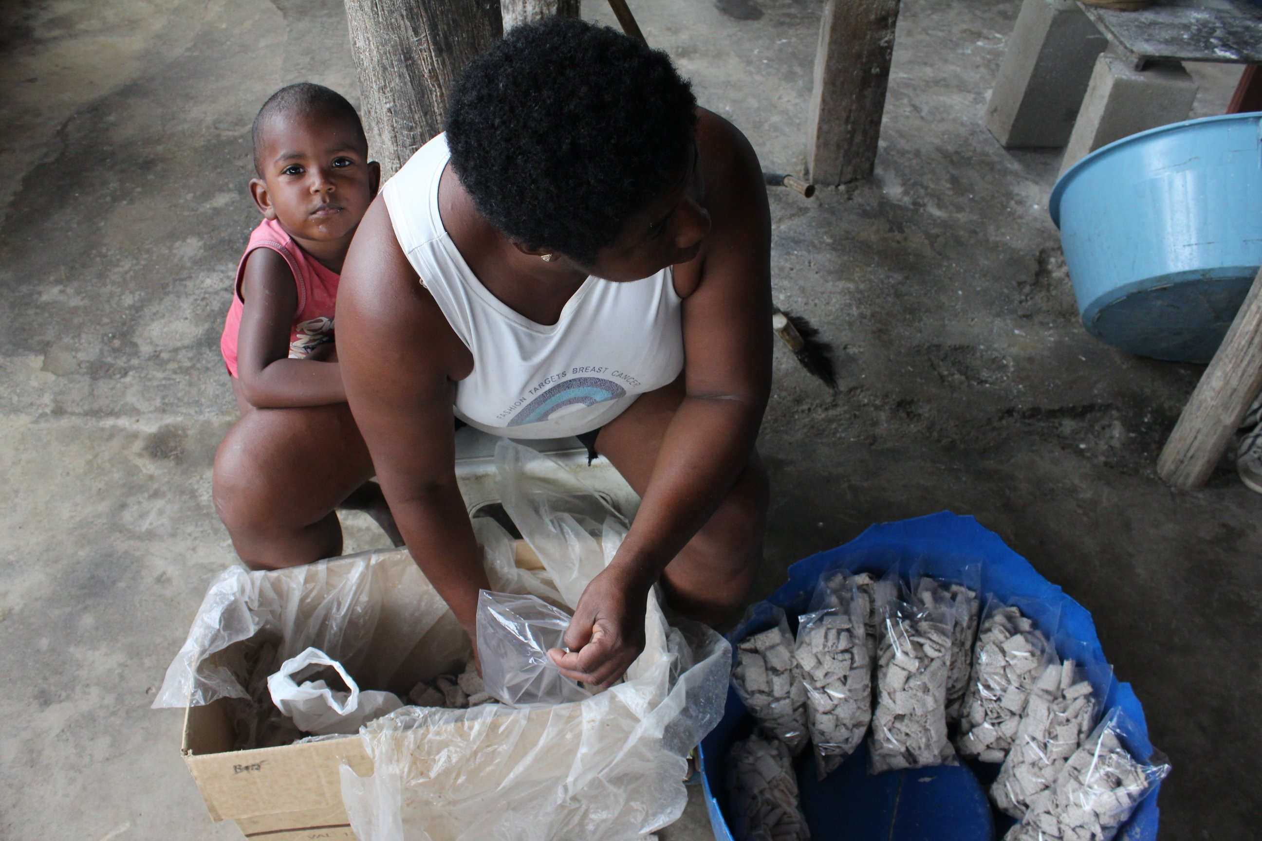 The Quilombo Divino Espírito Santo is surrounded by eucalyptus plantations for cellulose production and daily oil extraction. Many hectares are reserved for eucalyptus, unlike the community which only has its houses and the association's territory. The community produces much Beiju (made from cassava gum), but due to a two-year drought, they can't grow enough cassava and must buy it externally, increasing the price of their beiju.